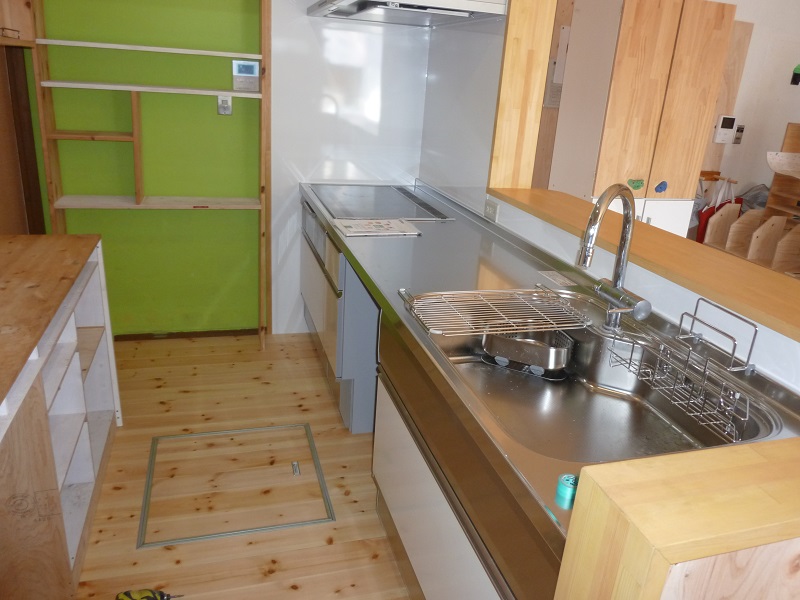 タカラスタンダードのL型キッチン。作業スペースが広いので調理もはかどるでしょう。