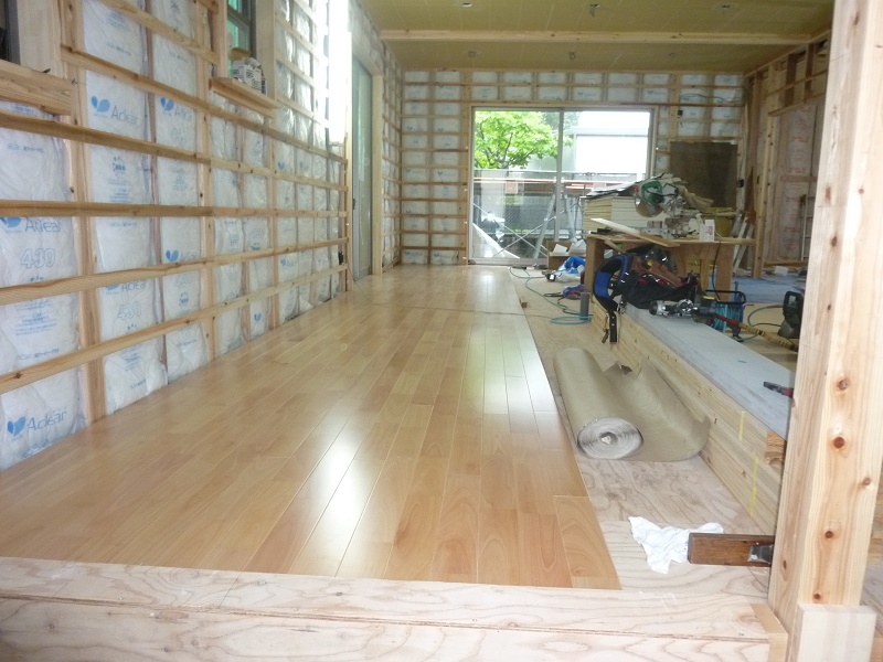 内装は床張り中です。